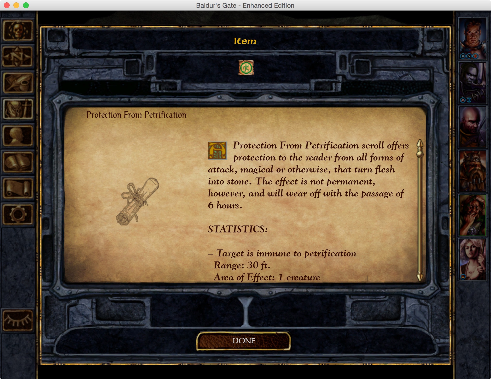 Which is a lot of stuff, because we haven’t had a chance to find a good resting spot since we stormed the Candlekeep Keep. I find some scrolls in Yeslick’s pockets and Xzar identifies them. Turns out, the little bastard was sitting on a Protection From Petrification scroll all this time.